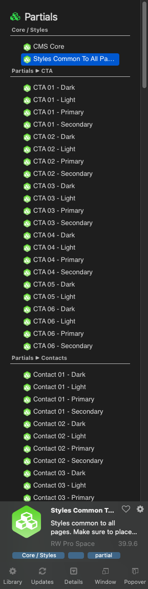 Partials are well organized, be sure to arrange the Stack Library as follows: